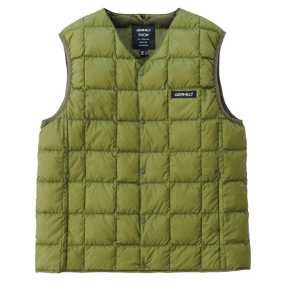 With excellent craftsmanship at the core of this product, the Gramicci x Taion Down Vest is an essential addition to your wardrobe. Crafted from a super-water repellent high density fabric, which repels both water and dust which is enhanced by the ripstop fabric adding extra durability. Coming with an storage bag, lightweight, whilst still keeping you warm – you can throw over any outfit when on the go and instantly elevate it.