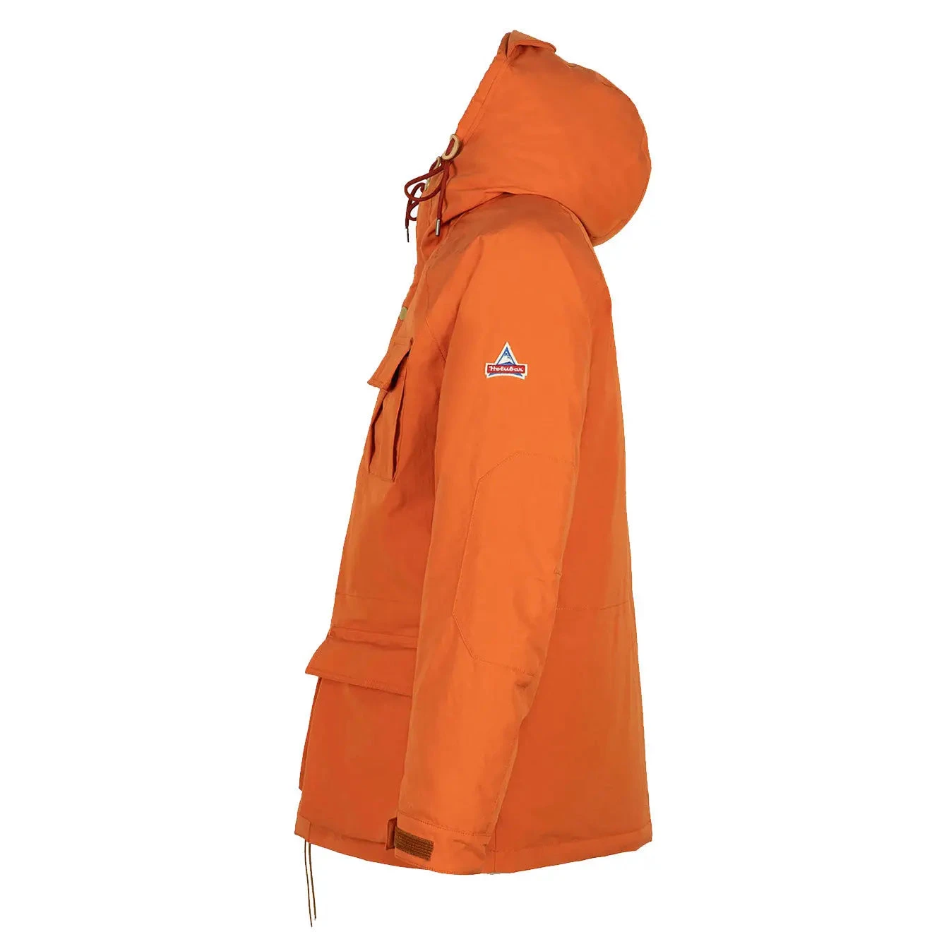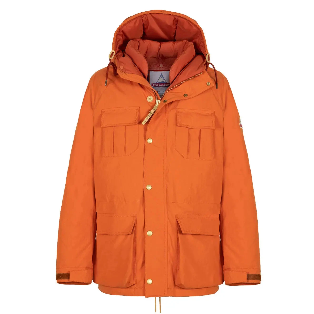 The Holubar Deerhunter Jacket is a must have for the colder months. Crafted from an exclusive laminated cotton with goose down padding, an adjustable and detachable hood, four flap pockets on the front, and a two way zip. Finished with the iconic patch detailing on the left sleeve, and the signature label on the back of the hood.
