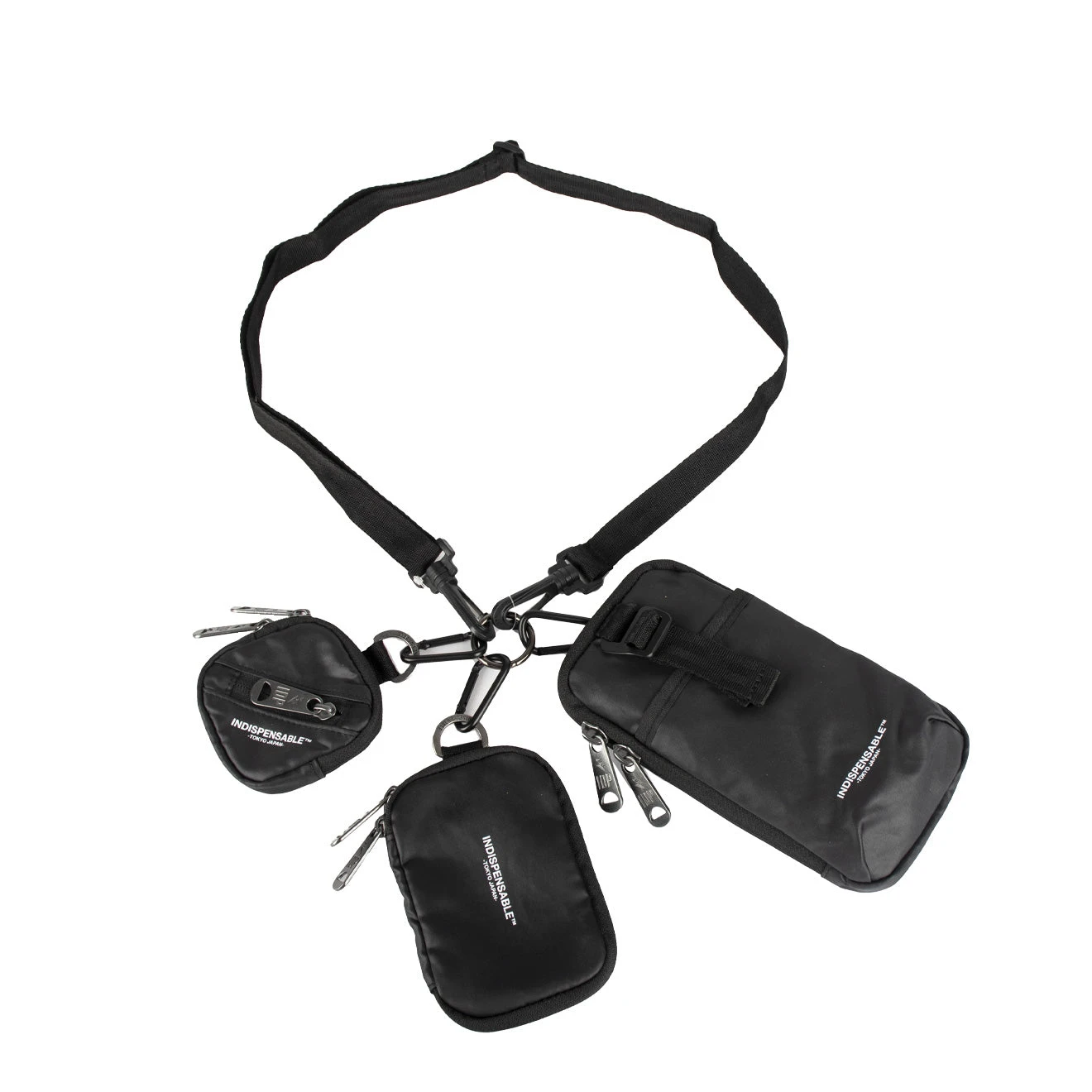 Indispensable’s bag comes with three small pouches that can be strung onto the webbing strap for customised storage. Each is made from durable Vegan TechLeatherâ„¢ and printed with the label’s logo in small type. Sling it around your neck or attach the components to a backpack or messenger.
