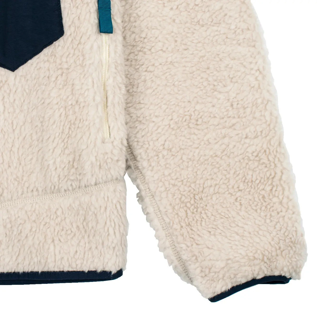 - Bonded Sherpa fleece (50% recycled)