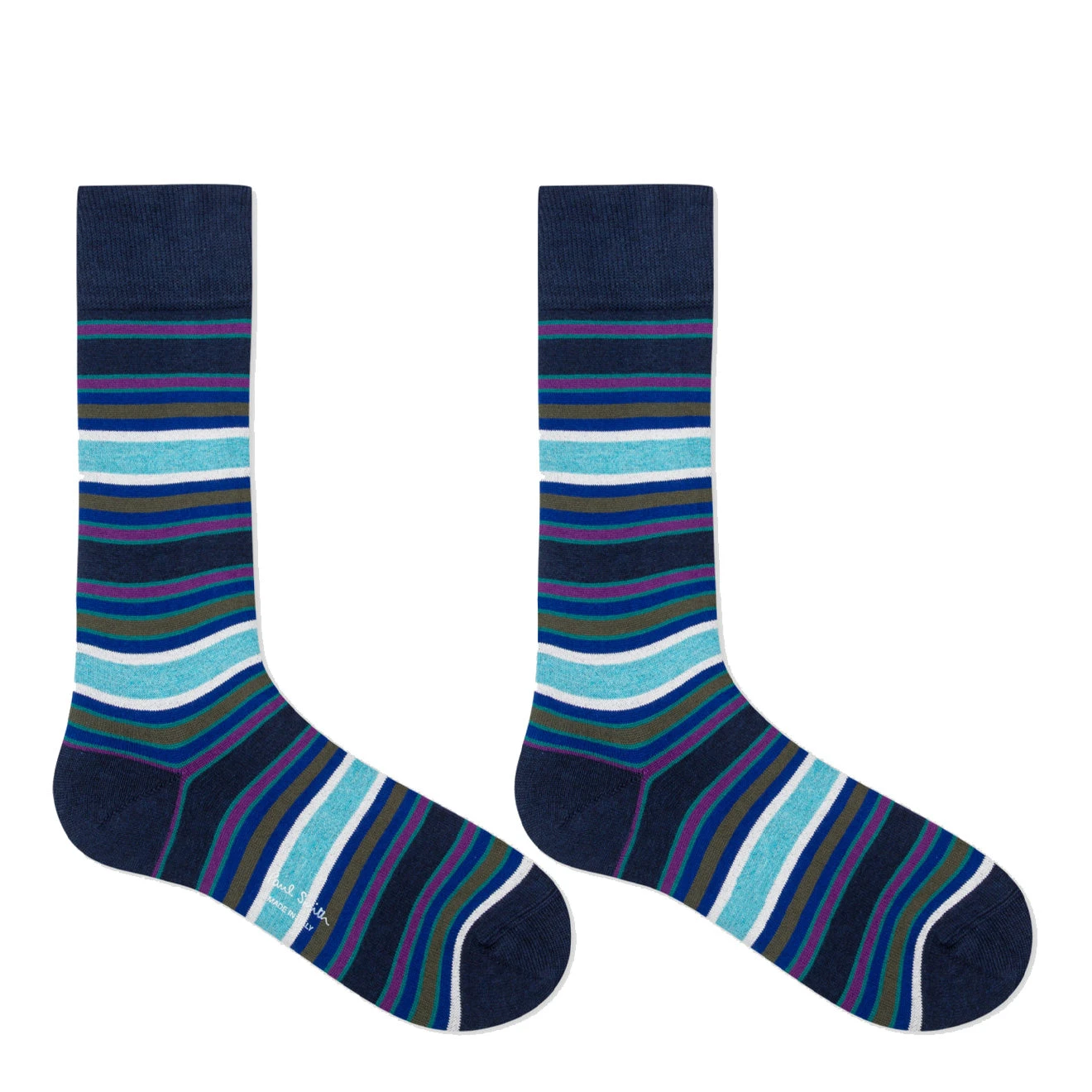 The Paul Smith Cotton-Blend Stripe Socks are crafted in Italy from a soft cotton blend, these navy socks feature a statement stripe design all-over. Complete with ribbed cuffs for a comfortable fit.