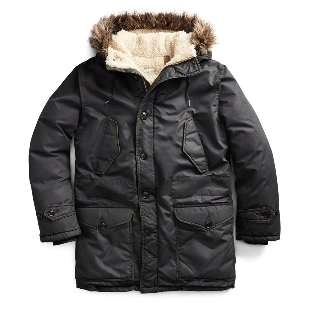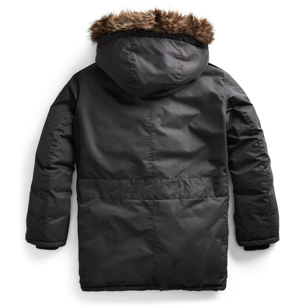 The RRL by Ralph Lauren Faux-Fur-Trim Parka takes its inspiration from surplus outerwear from the ’40s, heavily laundered for a timeworn look and feel. Crafted from a durable coated twill outer and a fleece lining in the upper body and hood. Insulated with a down-fill alternative and finished with a faux-fur trim at the hood.