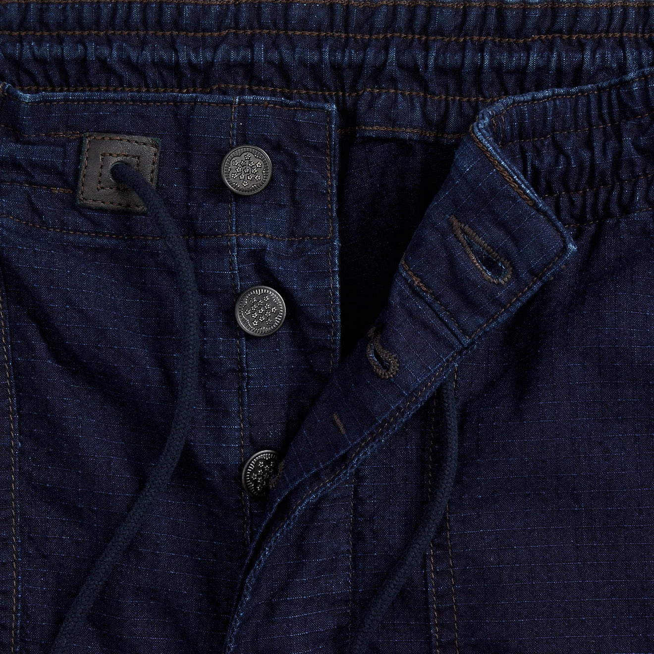 Classic-fitting shorts made with 6.5 oz. Japanese cotton ripstop. Dyed with true indigo. Vintage surplus-inspired construction with a button fly and patch pockets. Sanforized® to minimise shrinkage.
