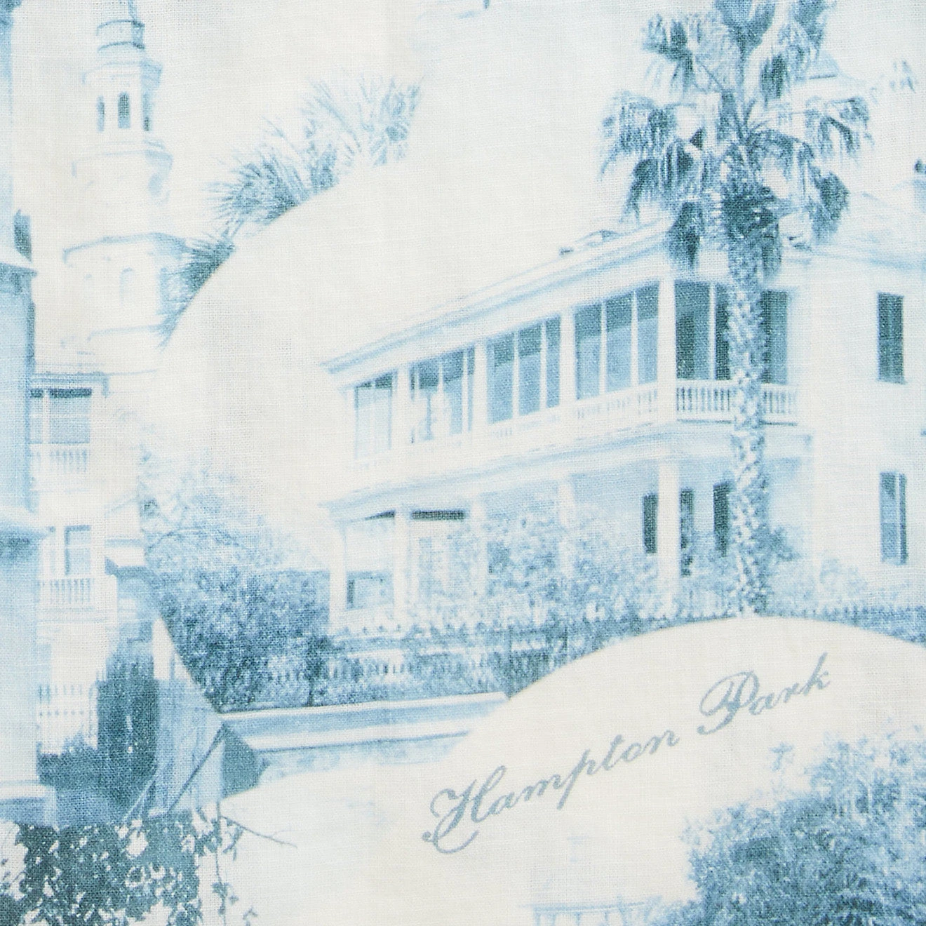 The RRL by Ralph Lauren Postcard-Print Linen-Cotton Camp Shirt Cream/Blue is made with a blend of linen and cotton. Tonal-blue print features scenic views of South Carolina. Two patch pockets at the chest. Vintage-inspired buttons.