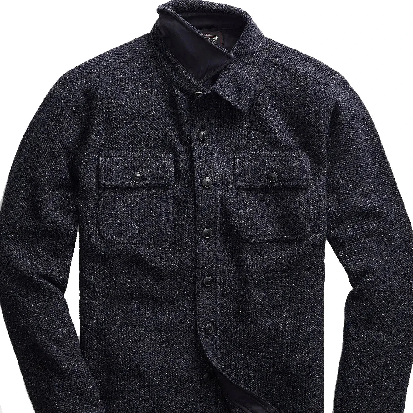 Classic workwear goodness from RRL with the Workshirt Sweater. Knitted from ring-spun cotton and featuring genuine horn buttons. Finished with utility pockets to the chest.
