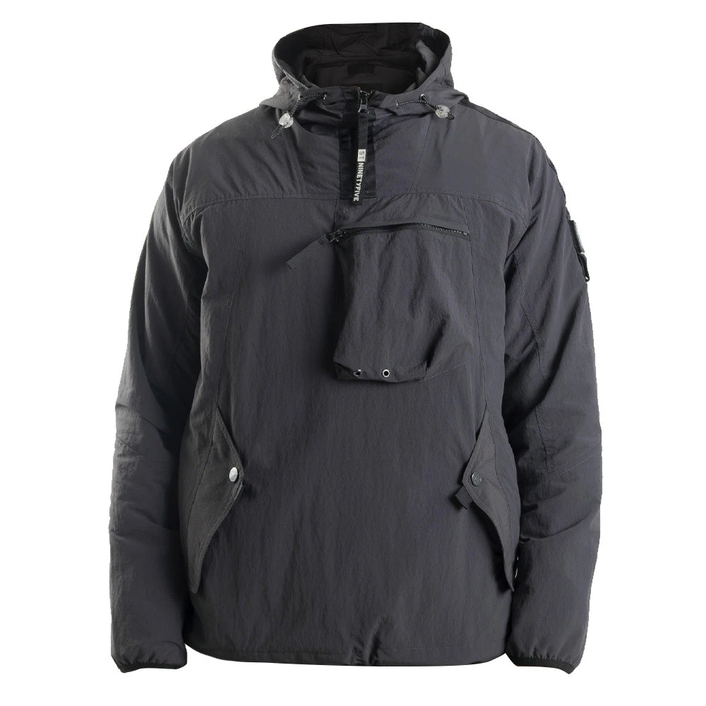 Constructed with 100% recycled nylon this adaptable statement piece takes inspiration from the military and technical influences of its roots. This overhead design offered protection from the elements while still being utilitarian. A side zip ensures it’s an easy garment to get on and off, while the jacket itself packs away into an internal pocket.