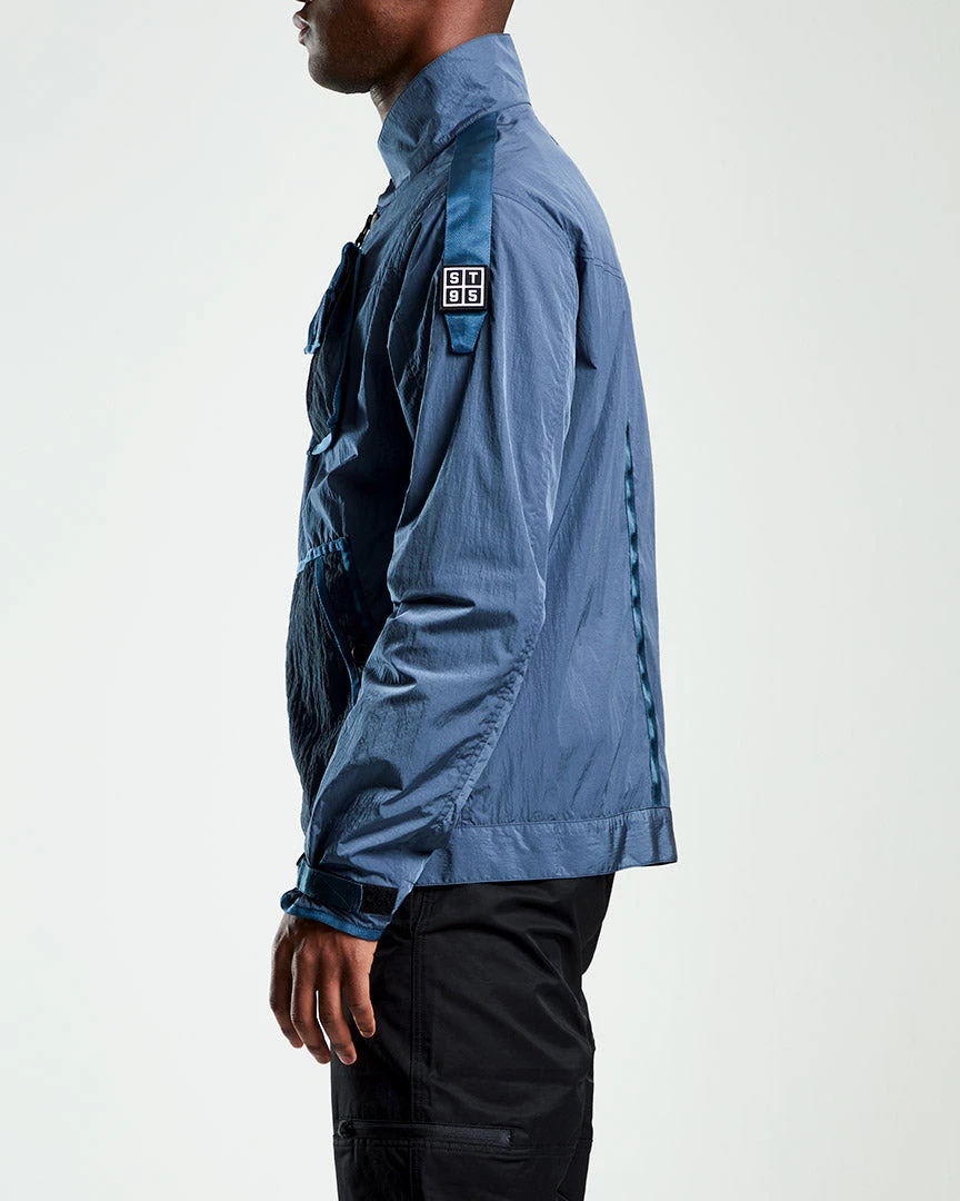 The Lunar Blouson from ST-95 is a relaxed fit and has been dyed in dual fabric to give tonal relief. Featuring signature shoulder, front and back webbing detail which incorporates a detachable branded patch to sleeve. Other pocket details have been inspired by US Military outerwear.