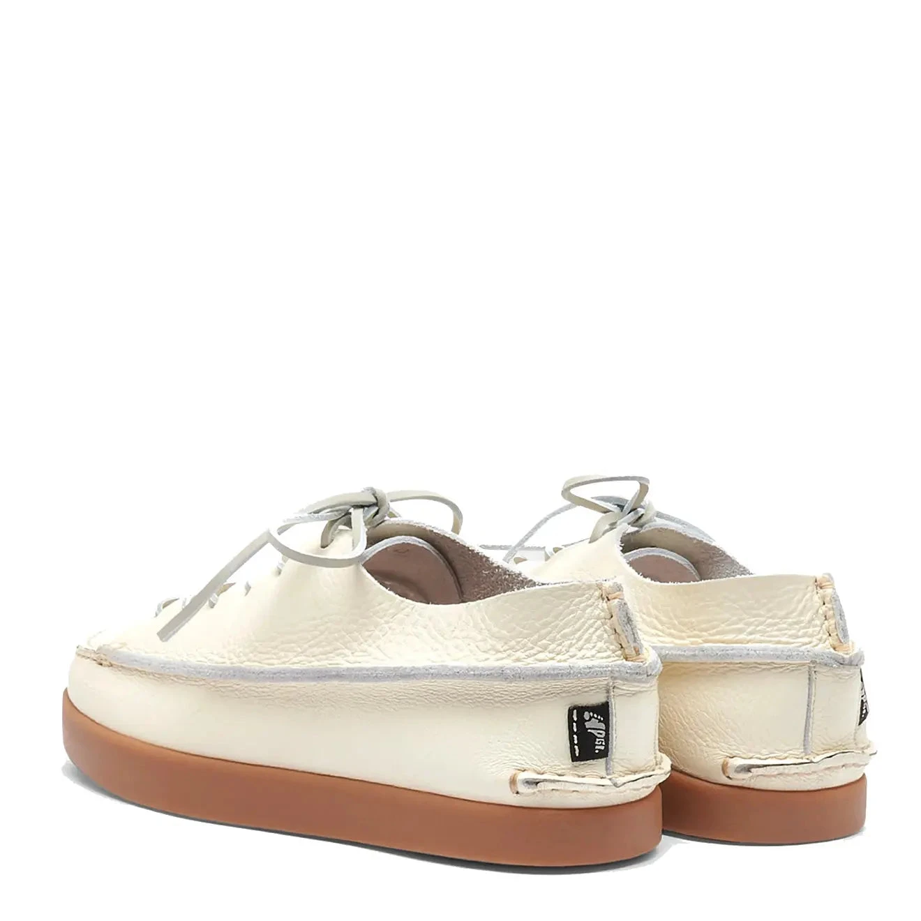 The Finn casual lace-up shoe features a hand-crafted, unlined premium off white tumbled leather upper with our signature rubber negative heel outsole – designed for comfort and improved posture – and vegetable tanned leather footbed.